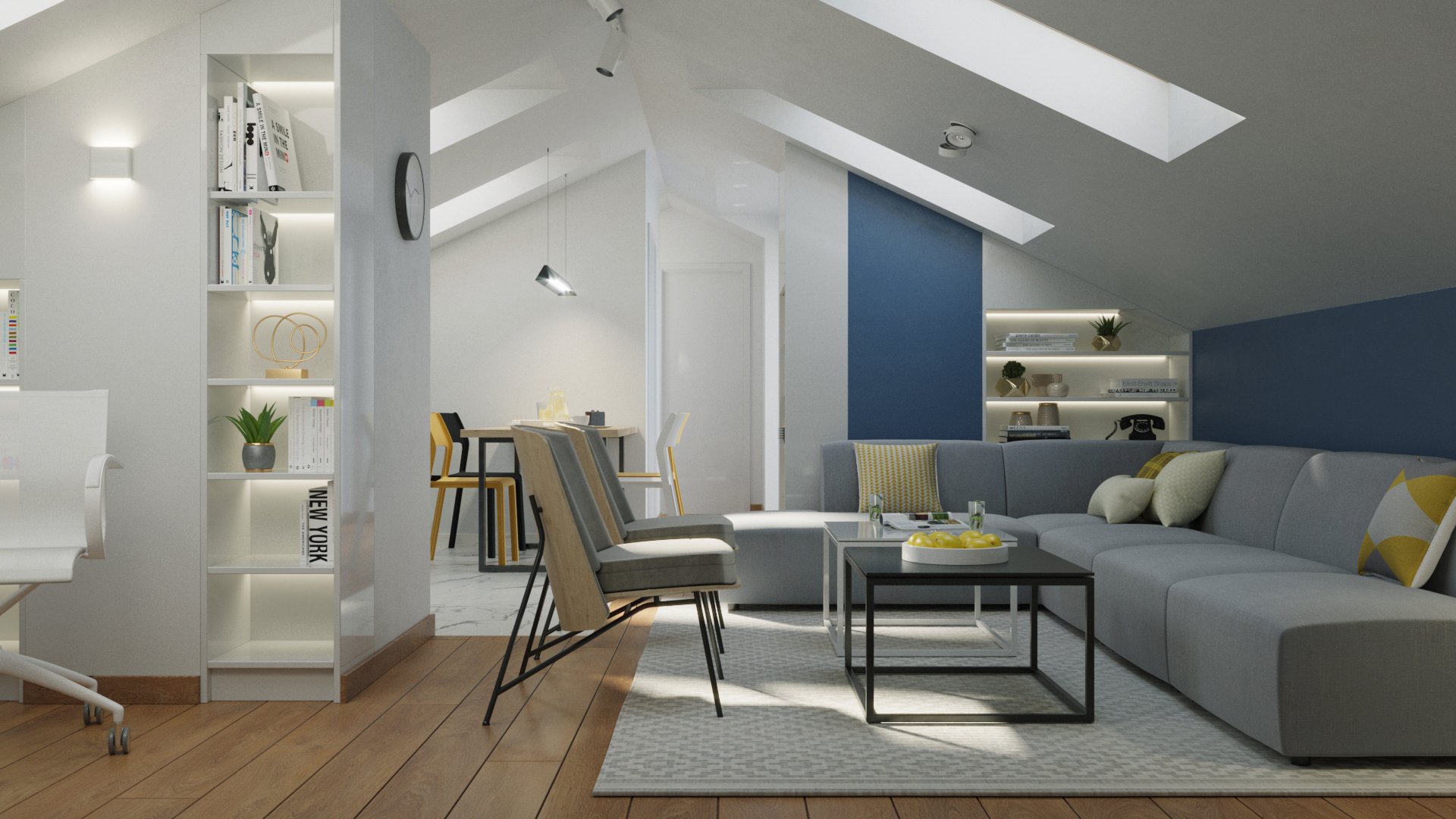 Adaptacija tavanskog prostora uvek je izazov gde je potrebno izboriti se sa smanjenom kubaturom prostora zbog kosih krovnih ravni koje celom prostoru uvek daju utisak skučenosti i mraka. Dobijena je prilika da prostor veličine 70m2 osposobi i uredi kao nezavisna stambena jedinica u okviru postojeće kuće.